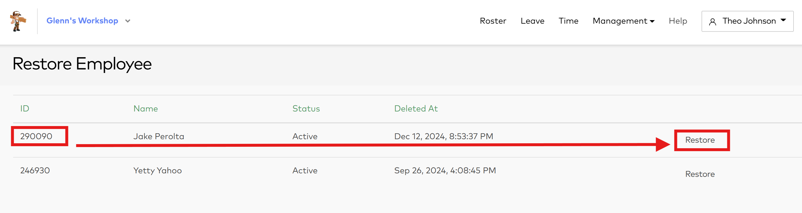 - Before restoring, copy the Employee ID to easily locate the profile later.